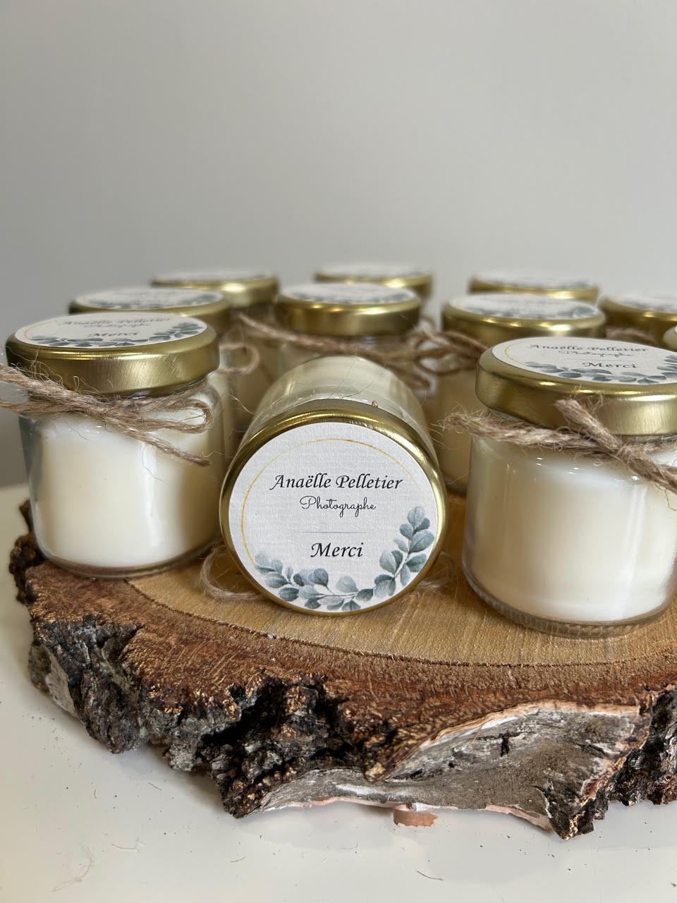 ✔ Bougies naturelles à la cire de soja – choisissez le parfum et le contenant.