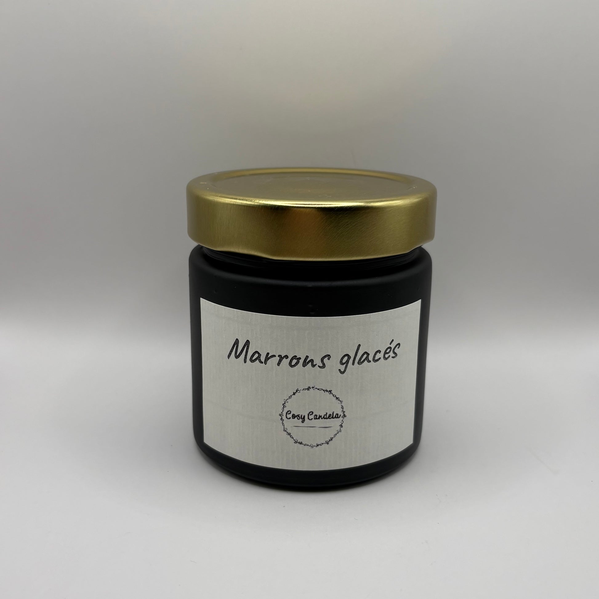 Bougie naturelle à la cire de soja parfumée aux marrons glacés au format 150 g.